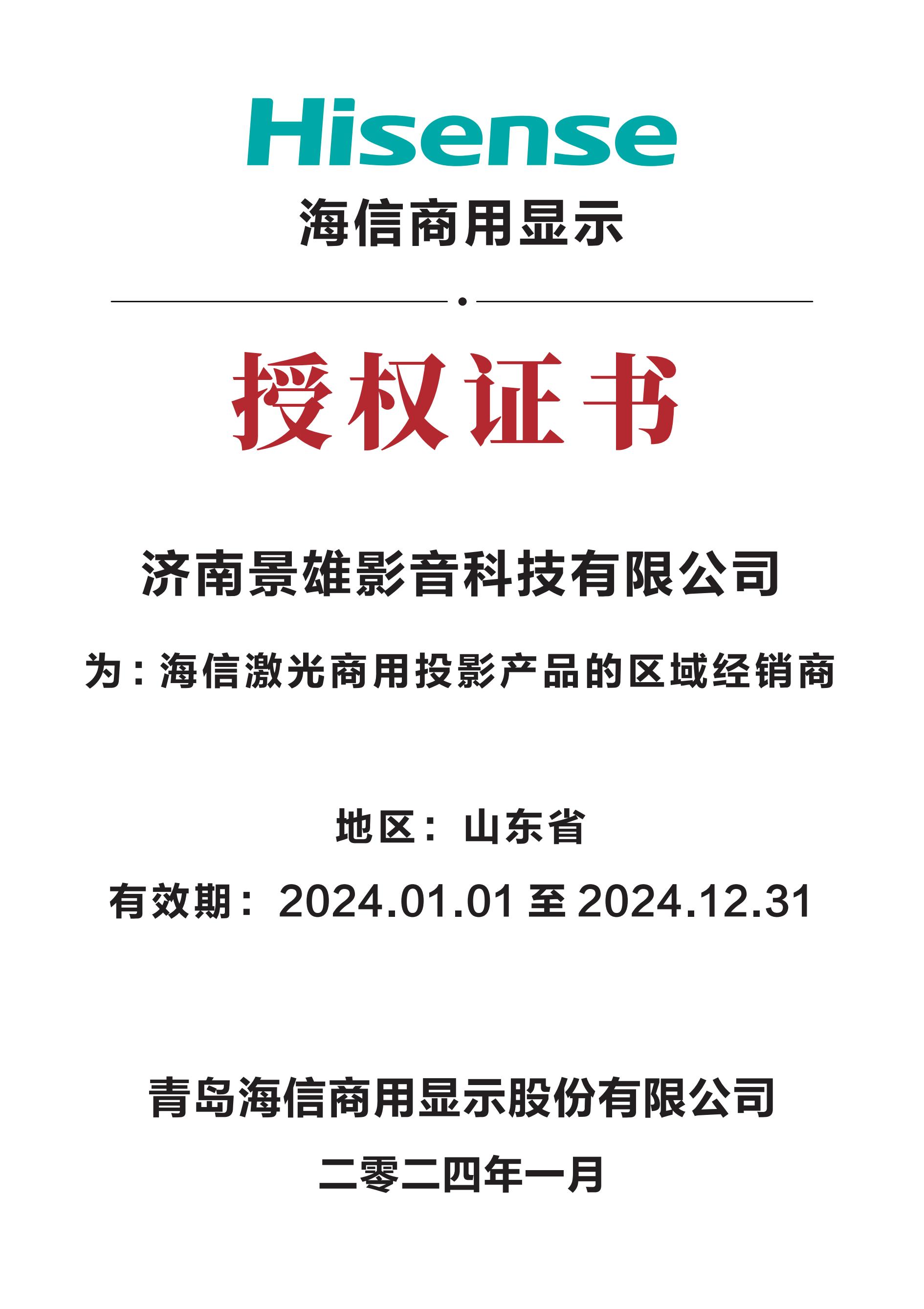 濟(jì)南景雄影音科技有限公司是山東省的知名IT企業(yè)。 公司成立以來一直致力于多媒體投影系統(tǒng)及其周邊器材的營銷服務(wù)。同時承接多媒體教室、專業(yè)(3D)家庭影院系統(tǒng)方案、音視頻會議系統(tǒng)、大屏幕投影拼接等工程的方案規(guī)劃、產(chǎn)品銷售、安裝調(diào)試、保修及維修業(yè)務(wù)。
